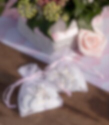 Piilota pusseihin pieniä yllätyksiä ja anna ne lahjaksi juhlavieraille, tai aseta pussit paikkakorttien viereen pöydän ympärille.