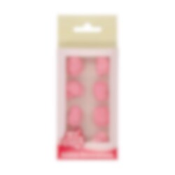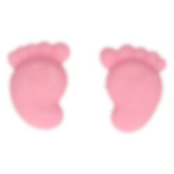 16 kpl sokerikoristeita, jotka esittävät pieniä vaaleanpunaisia vauvanjalkoja. Sopivat kakun tai leivosten koristeluun, kun on vauvakutsujen aika.