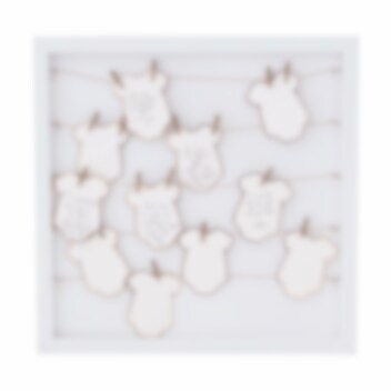 Superhieno vierastaulu babyshower juhliin tai kastajaisiin ja mitä mahtavin lahja! Taulu on 40 x 40 cm kokoinen ja siihen kuuluu 24 kpl pieniä vauvan bodeja joihin voit kirjoittaa viestin ja ripustaa tauluun.