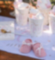 4 kpl lahjarasioita jotka esittävät suloisia vaaleanpunaisia vauvankenkiä.