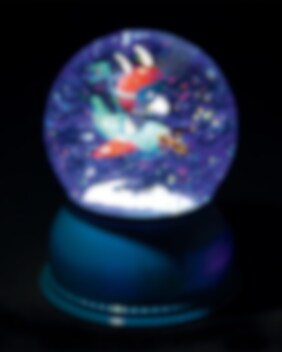 Yövalo vaihtaa väriä kauniisti ja rauhallisesti samalla kun glitteri pyörii söpön hahmon ympärillä. Kytkin ja ajastin ovat pohjassa ja valo sammuu automaattisesti noin 45 minuutin kuluttua. Valaisin toimii kolmella AA-paristolla, jotka eivät sisälly toimitukseen. Valaisin toimitetaan kauniissa lahjapakkauksessa. Mitat noin 14 x 11 x 11 cm.