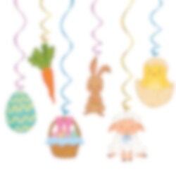 Luo leikkisä ja juhlava pääsiäistunnelma näillä hienoilla riippuvilla koristeilla. Sarjassa on kuusi erilaista mallia, muun muassa pupu, pääsiäismuna ja söpö tipu, jotka leijuvat kauniisti ilmassa värikkäiden kierteiden ansiosta.