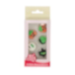 Näillä FunCakesin karmaisevilla sokerikoristeilla saat todellisen halloween-tunnelman! Tämä setti sisältää 4 kpl erilaisia yksityiskohtaisia halloween-hahmoja, jotka sopivat täydellisesti kakkujen, muffinssien tai torttujen koristeluun.