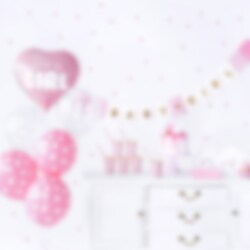 1x1 Vaaleanpunainen sydämenmuotoinen foliopallo valkoisella "It's a girl"-tekstillä