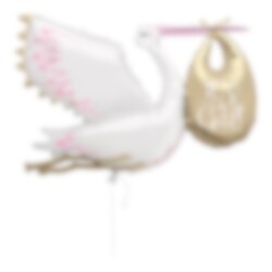 Todella hieno foliopallo, joka jäljittelee valkoista haikaraa kultaisilla ja vaaleanpunaisilla folioyksityiskohdilla. Tähän kuuluu myös kultainen foliokassi, jossa on valkoinen "It's a girl" teksti. Täydellinen koriste kaikille Baby Shower -juhlille. Ilmapallo on kooltaan noin 157 cm ja se voidaan täyttää tavallisella ilmalla (pallopumpulla) tai heliumilla, jotta se leijuu ilmassa.