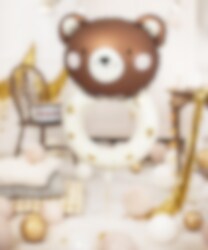 Söpöä nallea esittävä folioilmapallo, jonka alla roikkuu helistin. Ilmapallon koko täytettynä on 61 x 88 cm ja se voidaan täyttää ilmalla tai heliumilla.