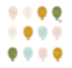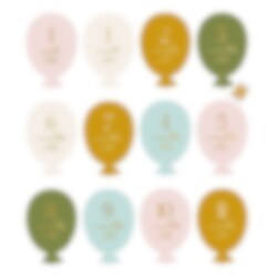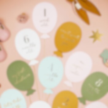 Hienot värikkäät ilmapallojen muotoiset virstanpylväskortit. Niitä voidaan käyttää vauvan kehityksen valokuvaamiseen ja jakamiseen ystävien ja perheenjäsenten kanssa. Täydellinen lahja uudelle äidille babyshower -kutsuille.