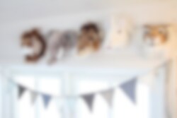 Söpö pieni tiikerinpää lastenhuoneen tai olohuoneen seinälle. Ripustetaan seinälle silmukan avulla. Mitat: 12 x 14 x 11 cm.