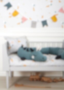 Todella pitkä ja hieno merenvihreä unityyny joka on valmistettu ekologisesta puuvillasta.
