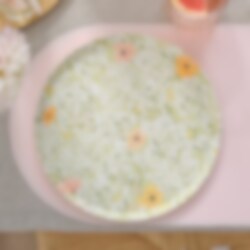 8 kpl. kauniita pahvilautasia kukkakuvioilla Floral Baby -mallistosta. Virkistävä teema lämpimissä ja kesäisissä värisävyissä. Nämä lautaset ovat ihastuttavan suloisia sekä babyshowereille että ristiäisiin. Lautasten halkaisija on 25 cm.
