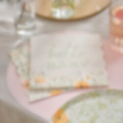 16 kpl kauniita ja kesäisiä servettejä. Täydellinen lisä pöydän kattaukseen babyshowereille. Servetit antavat juhlapöydälle kauniin kukkaisen silauksen. Servetit ovat 2-kerroksisia ja avattuna 30 x 30 cm kokoisia.