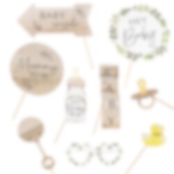 10 kpl valokuvatarvikkeita kauniissa väreissä ja erilaisilla vauvoihin liittyvillä kuvioilla. Sinulla ja vieraillasi tulee olemaan hauskaa, jos otatte kuvia vauvajuhlissa näitä tarvikkeita käyttäen.
