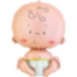 Hauska, vauvan-muotoinen supershaped folioilmapallo. Ilmapallo on hauska koriste 1-vuotis-syntymäpäiväjuhliin, ristiäisiin tai babyshower-juhliin. Ilmapallo on noin 56 cm korkea. Ilmapallon voi täyttää tavallisella ilmalla tai heliumilla.