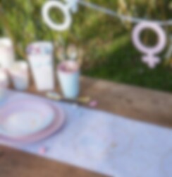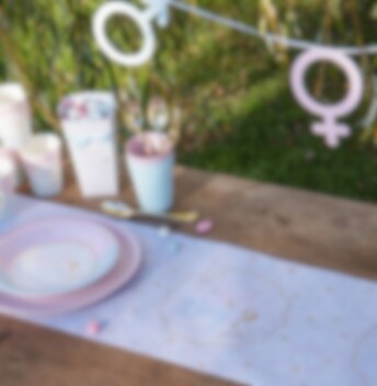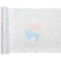 Suloinen koriste jonka rullaat helposti pöydälle ja liina on täydellinen gender reveal-juhliin.