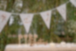 Lippuviirinauha sopii kauniisti katetun pöydän taakse, lahjapöydän viereen tai huoneen koristeeksi.