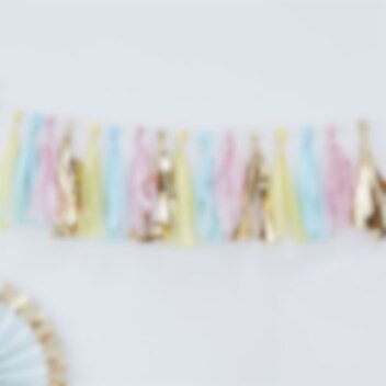 Koristeellinen köynnös kauniilla pastellin- ja kullanvärisillä tupsuilla. Kokoa köynnös helposti itse 16:sta paperi- ja foliotupsusta ja 2 metrin pituisesta narusta.