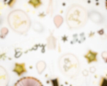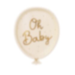 6 kpl ilmapallon muotoisia pahvilautasia, joissa on teksti "Oh Baby" kultaisella foliolla. Lautasten koko on 17,5 x 22 cm.