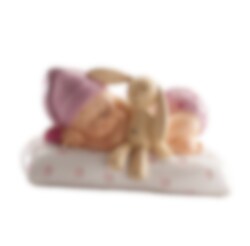 Suloinen vauvaa ja nallekarhua esittävä kakkukoristie, jolla koristelet Babyshower-kakun kauniiksi.