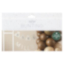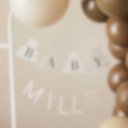 Viimeistele vauvakutsut tällä tyylikkäällä, räätälöitävissä olevalla viirinauhalla. Siinä on baby-teksti neljässä söpössä nallessa. Sopii täydellisesti yhteen Hello Baby- ja Teddy Bear Babyshower -teemojen kanssa. Pakkaus sisältää: 24 kermanvalkoista kirjainta, 4 kermanvalkoista nallea, joissa on baby -tekstillä. 4 metriä narua. Sekä tuote että pakkaus ovat kierrätettäviä ja FSC-sertifioituja.