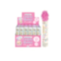 Konfettitykki, joka on täytetty vaaleanpunaisella konfetilla. Hauska tapa paljastaa vauvan sukupuoli babyshower juhlissa.