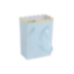 6 kpl. suloisia pieniä vaaleansinisiä lahjakasseja kultafolioiduilla yksityiskohdilla ja satiininauhasta tehdyillä kahvoilla. Täydellisiä pienille yllätyksille. Pussit on valmistettu paperista ja ovat 6 x 7 cm kokoisia.