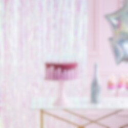 Ovikoriste kimaltelevalla helmiäisen/valkoisen värillä. Tyylikäs koriste oviaukkoon tai seinälle juhlissa tai babyshowereilla. Ovikoriste on n. 90 x 250 cm kooltaan.