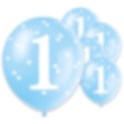 5 kpl vaaleansinisiä lateksipalloja, joita koristaa valkoinen numero 1. Täydellinen koriste 1-vuotisjuhliin. Pallot ovat halkaisijaltaan noin 30 cm täytettynä ja ne täytetään ilmalla tai heliumilla.
