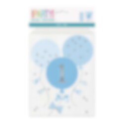 Vaaleansiniruutuiset Juhlapussit palloilla, 1-vuotta 8 kpl