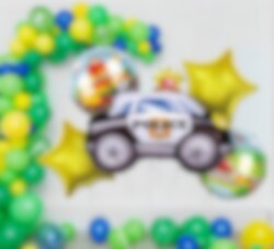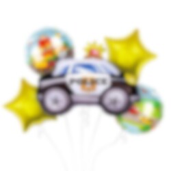 Hauska ilmapallokimppu, jossa on erilaisia foliopalloja polisi-teemalla. Kimppu koostuu suuresta 70 cm poliisiautosta, kahdesta pyöreästä 35 cm ilmapallosta autokuvilla ja kahdesta kullanvärisestä 35 cm tähdenmuotoisesta ilmapallosta. Ilmapallojen lisäksi mukana on valkoista ilmapallonarua. Ilmapalloissa on itsesukeutuvat venttiilit, joten ne voidaan täyttää ilmapallopumpun avulla. Ihannetapauksessa ilmapallot voidaan täyttää heliumilla, jotta ne pysyvät ilmassa. Jos täytät ne heliumilla, ne voivat pysyä ilmassa jopa viikon ajan. Helium ja ilmapallopainot eivät kuulu mukaan.