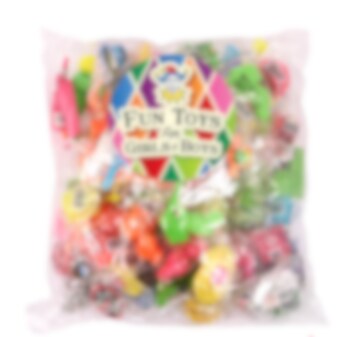 Pakkaus sisältää 100 hauskaa lelua erilaisilla aiheilla. Sopivat hauskasta juhlapusseihin tai pinatan täytteiksi. Lelut ovat CE-merkittyjä, mutta ne eivät sovellu alle 3-vuotiaille lapsille.