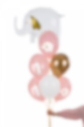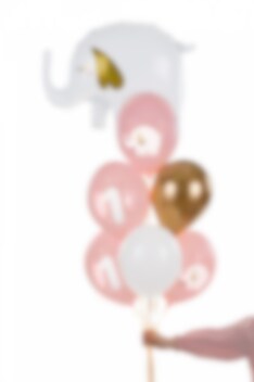 Ihana ja laadukas ilmapallosetti kauniissa väreissä 1-vuotisteemalla. Kaunis koriste norsuaiheisiin 1-vuotisjuhliin. Pakkaus sisältää 4 vaaleanpunaista ilmapalloa, joissa on kahdessa on valkoinen norsu ja toisissa numero yksi. Siihen kuuluu myös 1 valkoinen ilmapallo ja 1 kultainen ilmapallo. Kaikkien ilmapallojen halkaisija on noin 30 cm täytettynä ja ne voidaan täyttää ilmalla tai heliumilla.