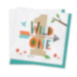 16 kpl servettejä ihanissa väreissä "Wild One" -tekstillä ja numerolla 1 taustalla Woodland Animals-teemasta. Servetit ovat 2-keroksisia ja niiden koko avattuna on noin 33 x 33 cm.