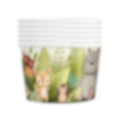 6 kpl. pieniä jäätelökuppeja kauniissa väreissä suloisillaa kuvioilla erilaisista metsäneläimistä. Kupit ovat täydellisiä jäätelön, karkkien, herkkujen tai muiden naposteltavien tarjoiluun. Tilavuus 150 ml, koko 6 x 7 cm. Valmistettu pahvista.