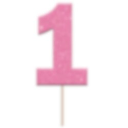 12 kpl juhlatikkuja kuvalla numerosta 1 pinkillä ja kullanvärisellä kimalteella. Täydelliset kakun tai muffinssien koristamiseen 1-vuotisjuhlia varten. Piikit ovat n. 9,5 cm pitkiä.