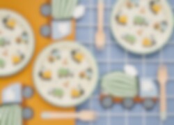 6 kpl. lautasia ihastuttavissa väreissä erilaisilla työkonekuvilla. Nämä lautaset ovat täydellinen valinta suloiseen teemajuhlaan niille, jotka ovat kiinnostuneita ajoneuvoista ja rakennustyömaista.
