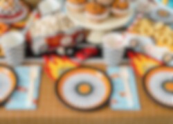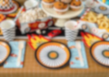 6 kpl upeita lautasia, jotka esittävät kilpa-auton renkaan kuvaa 3D-tuliliekillä. Näiden avulla voit järjestää vauhdikkaan juhlan ja yhdistää sen muihin tyylikkäisiin saman teeman lisävarusteisiin.