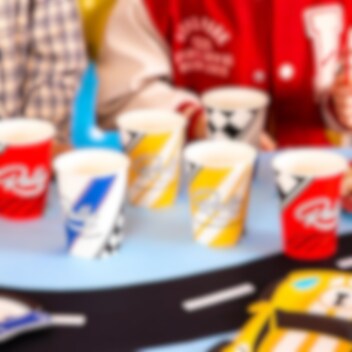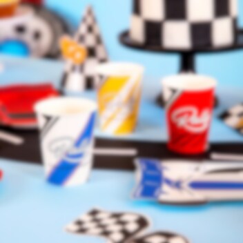 6 kpl. pahvimukeja vauhdikkaalla Rally Championship -kuviolla keltaisena, valkoisena ja punaisena. Täydelliset, kun haluat yhtenäisen ja hauskan kattauksen juhliin Racing Car -teemalla.
