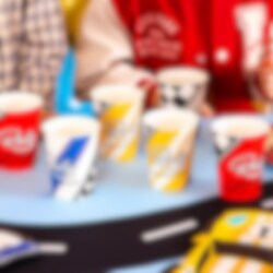 Mukit on valmistettu paperista, ovat noin 9 cm korkeita ja tilavuudeltaan noin 270 ml.