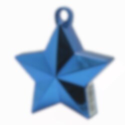 Tyylikäs tähden mallinen ilmapallon paino sinistä metalliväriä, pitää täytetyt heliumpallot paikallaan. Paino on n. 170 grammaa ja kapasiteetti noin 30 kpl lateksi-ilmapalloa tai 8-10 kpl numero- tai kirjainilmapalloa.