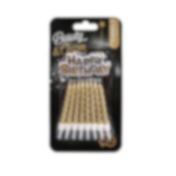 Tämä setti sisältää 16 kultaista kakkukynttilää ja yhteensopivan kyltin, jossa on teksti "Happy Birthday". Kakkukynttilät ovat 8 cm korkeita. Täydellisiä tuomaan tunnelmallista eleganssia kakkuun ja tekevät juhlasta vieläkin muistettavamman.
