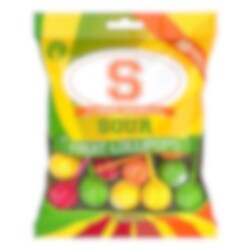 S-merkki Sour Fruit-tikkarit sisältää eri makuisia kovia tikkareita. Pussi sisältää seuraavia makuja: vadelma, sitruuna, päärynä ja ananas. Tuote on vegaaninen. Myydään 130 gramman pusseissa (10 tikkaria).