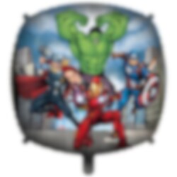 Tyylikäs neliönmuotoinen folioilmapallo, jossa on kaksipuolinen kuva Avengers-sankareista. Hauskaa koriste juhliisi.