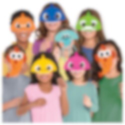 8 kpl Baby Shark haiperhettä kuviaavia kasvonaamareita. Kun on aika Baby Shark -teemaisille juhlille, sinä ja ystäväsi voitte pukeutua suosikkeihinne. Naamarit kiinnitetään kuminauhalla.