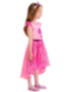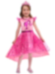 Astu Barbien kimaltelevaan maailmaan! Tämä vaaleanpunainen setti sisältää kauniin mekon ja koruja. Täydellinen lapsille, jotka rakastavat kimallusta, glamouria ja leikkiä.