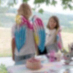 Tämä kaunis folioilmapallo on muotoiltu taianomaisiksi keijun siiviksi. Niitä voidaan käyttää kahdella eri tavalla. Ne voi pitää perinteisenä koristeena tai lapset voivat käyttää siipiä naamiaisasusteena. Siivet sopivat täydellisesti yksisarvisteeman juhliin sekä perhosteeman juhliin.