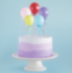 Kakkukoristesetti, joka sisältää 5 kpl värikästä ilmapalloa juhlakakun koristeluun. Pakkaus sisältää 5 kpl tikkua, 5 kpl ilmapalloa ja 5 kpl narua.