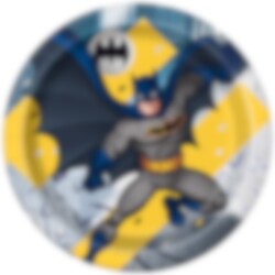 8 kpl pyöreitä lautasia, joissa on Gothamin supersankarin Batmanin kuva. Lautasten läpimitta on n. 23 cm.