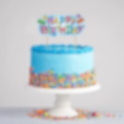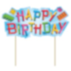 Erittäin hieno kakkukoriste värikkäällä rakennuspalikka-teemalla ja tekstillä "Happy Birthday". Koriste on tehty pahvista ja on noin 18 x 20 cm kokoinen.