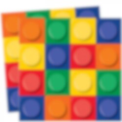 16 hienoa lautasliinaa värikkäiden rakennuspalikoiden kuvilla. Näille lautasliinoille löytyy takuulla käyttöä juhlapöydässä. Lautasliinoissa on 2 kerrosta ja niiden koko on n. 33 x 33 cm.