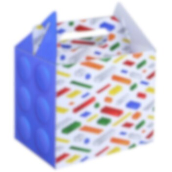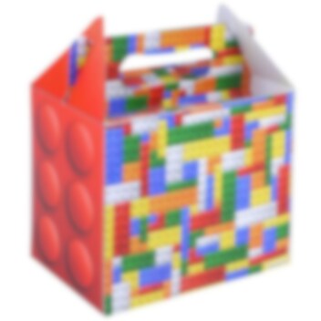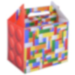 Hieno partybox, josta on saatavilla kolme erilaista versiota värikkäillä rakennuspalikoilla. Täydellinen makeisille ja pienille leluille LEGO-aiheisiin juhliin. Partybox on valmistettu pahvista, ja se on helppo taittaa kokoon.